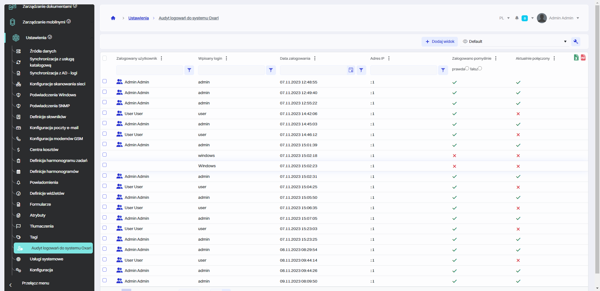 Audyt logowań do systemu OXARI