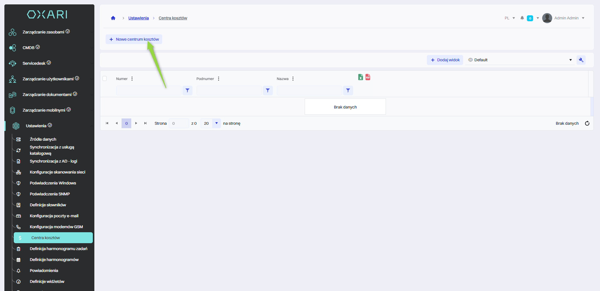 Centrum kosztów w systemie OXARI służy do zarządzania i monitorowania kosztów oraz wydatków w organizacji.