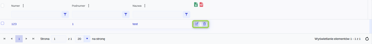 Centrum kosztów może być edytowane lub usunięte przy użyciu następujących przycisków.