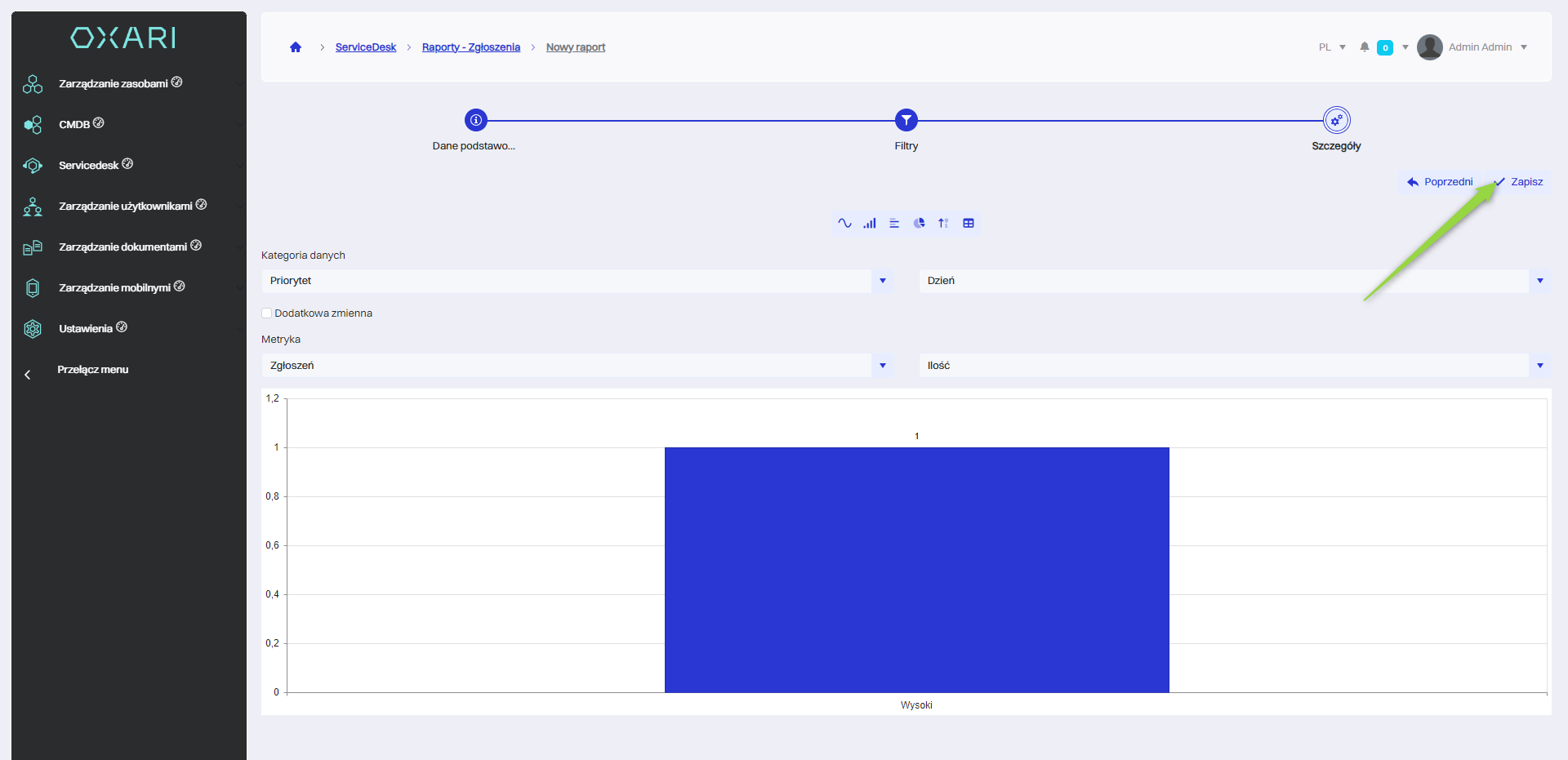 W tym kroku raport zostaje zapisany, należy kliknąć przycisk “Zapisz”.