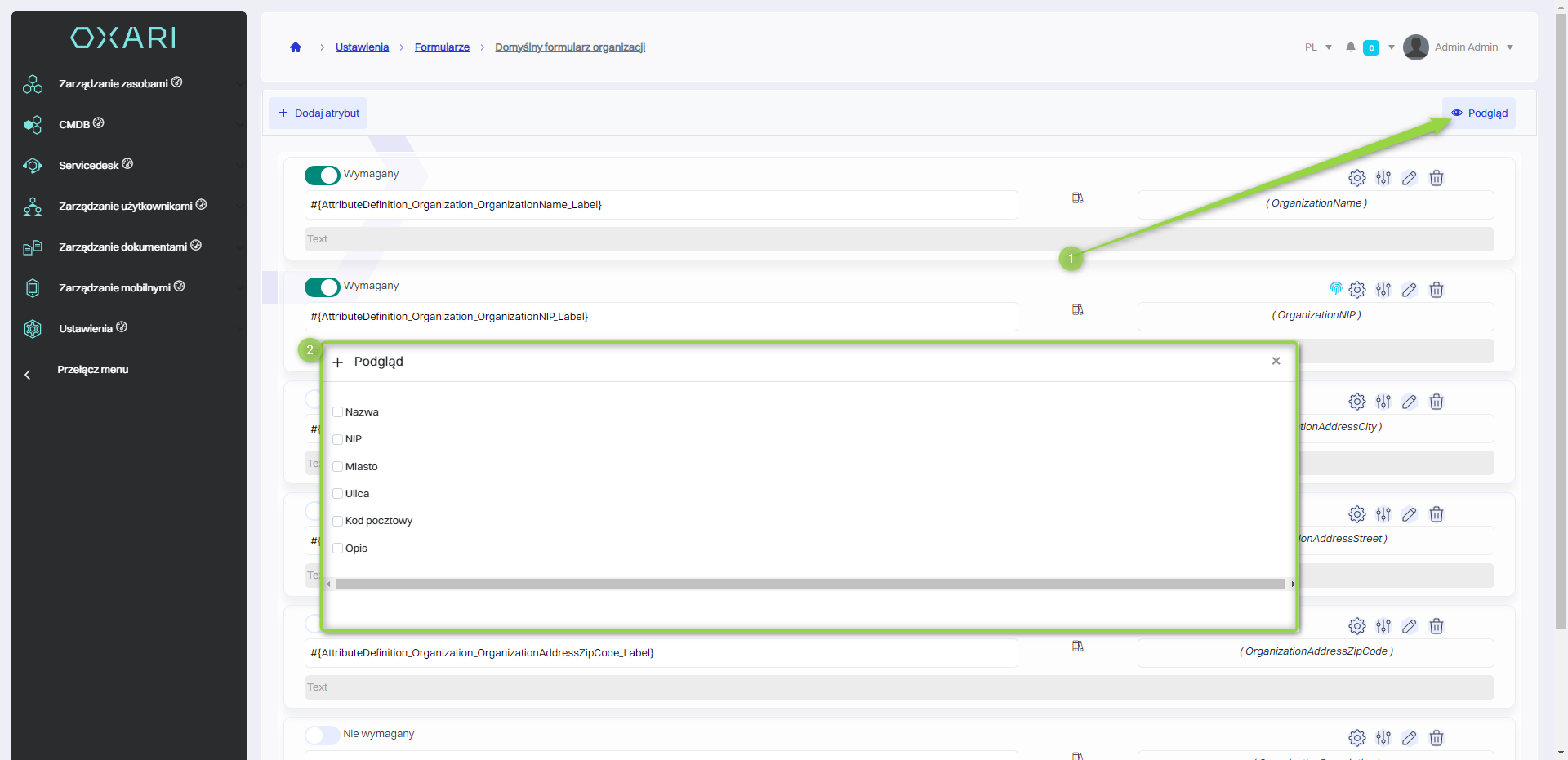 | 4 | Pole wyboru Wymagany - Zaznaczenie opcji, jeżeli atrybut jest obowiązkowy w formularzu. |