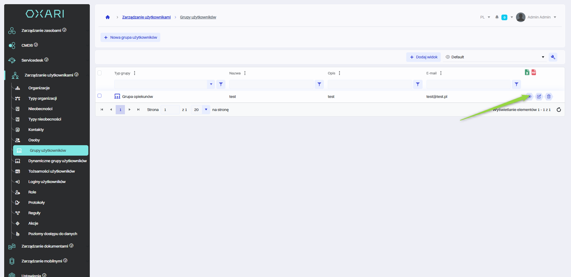 Grupa użytkowników została dodana do listy.