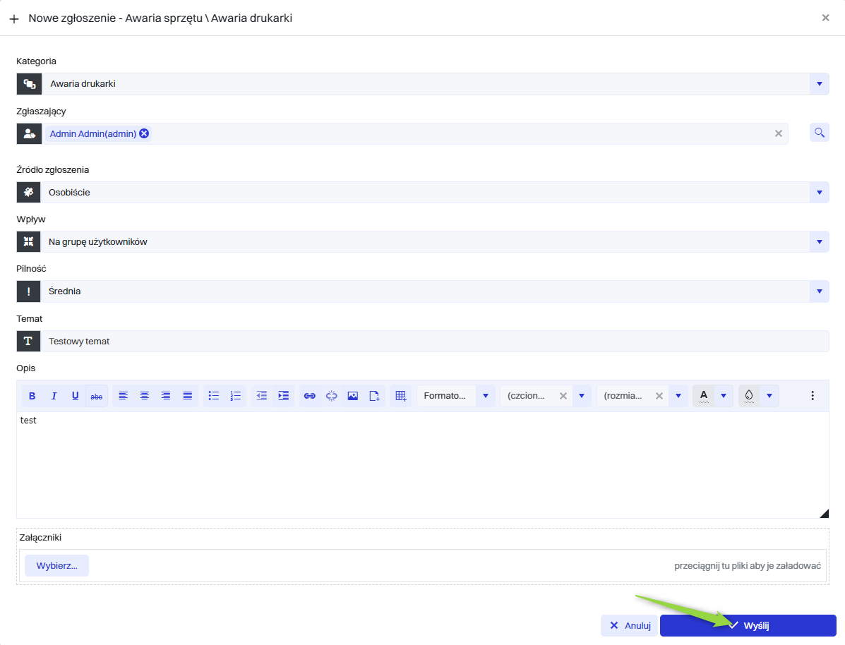 Dodanie nowego zgłoszenia