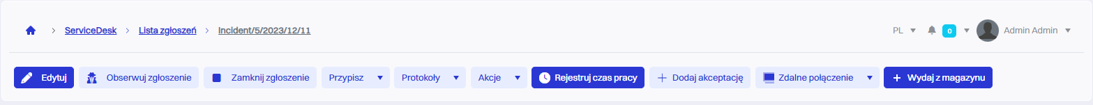 | 3 | Zamknij zgłoszenie - Zamyka zgłoszenie, oznaczając je jako zamknięte. |