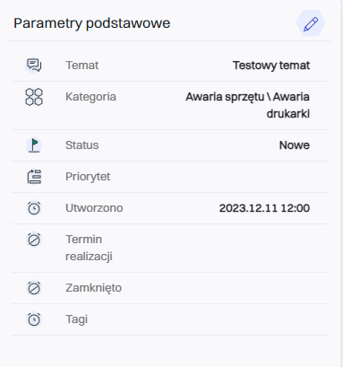 Pokazane są podstawowe parametry zgłoszenia, z możliwością edycji tych danych.