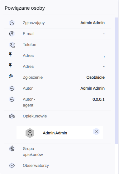 Osoby które są powiązane ze zgłoszeniem.