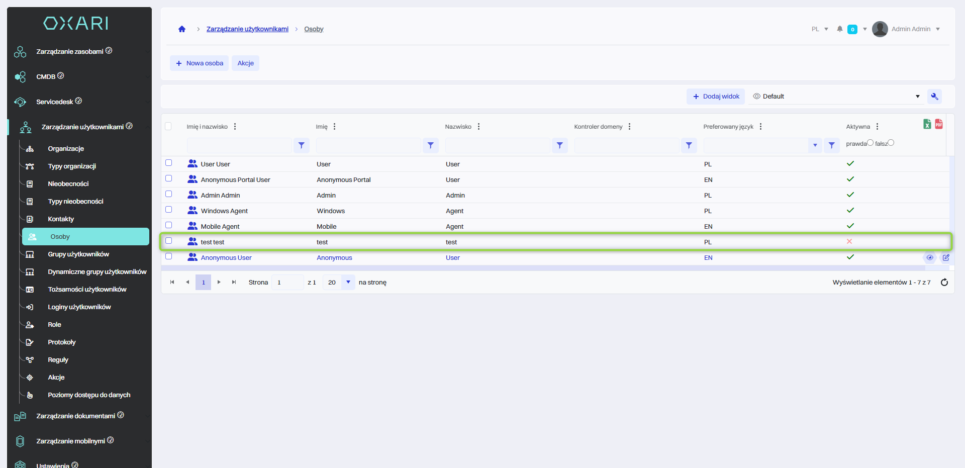 Konto zostaje dodane, osoba widnieje w sekcji Zarządzanie użytkownikami > Osoby.
