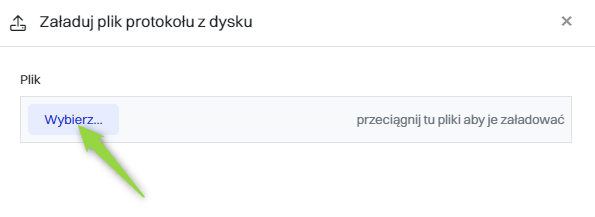 Następnie w oknie “Załaduj plik protokołu z dysku” należy kliknąć przycisk “Wybierz…”.
