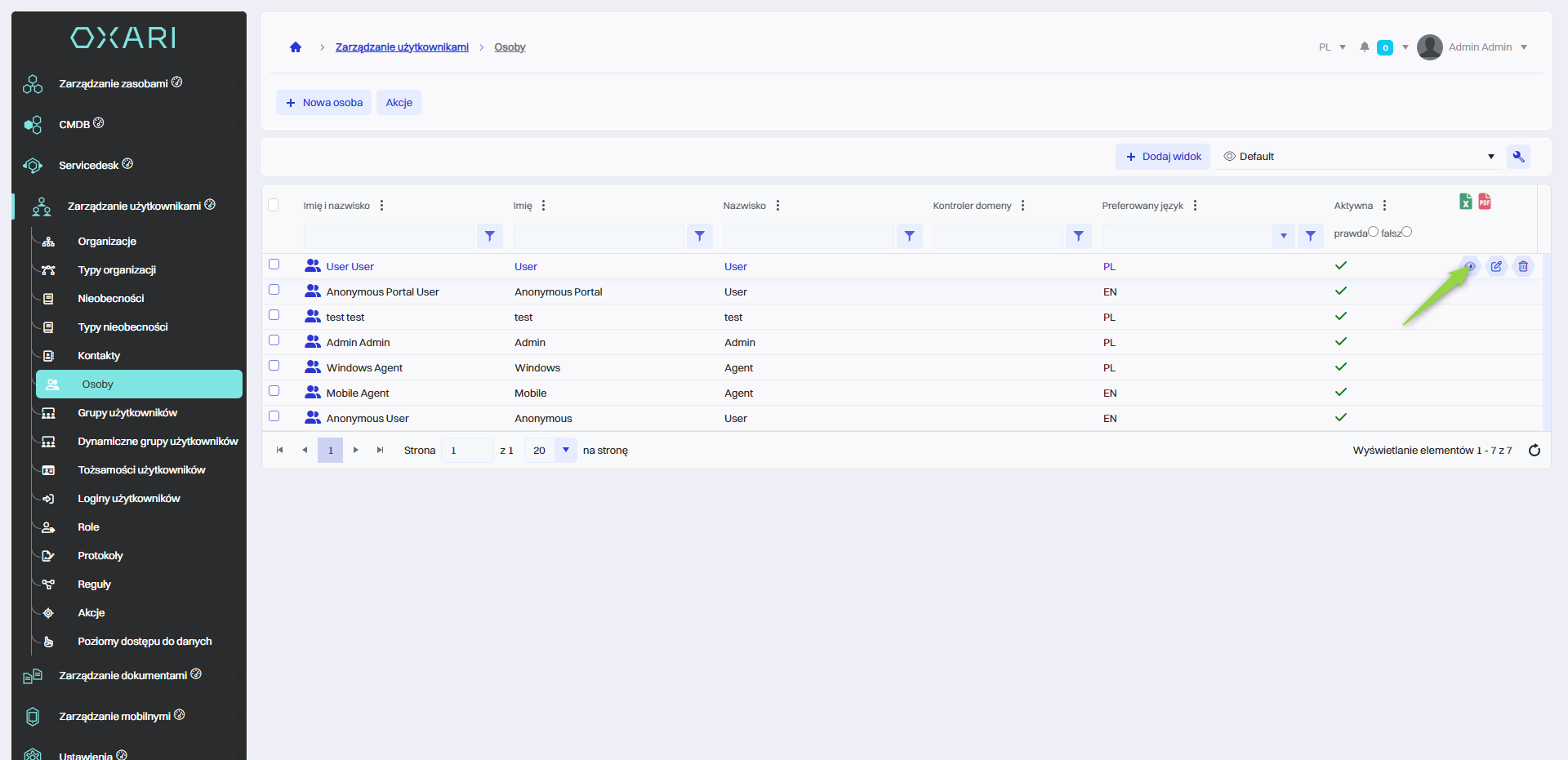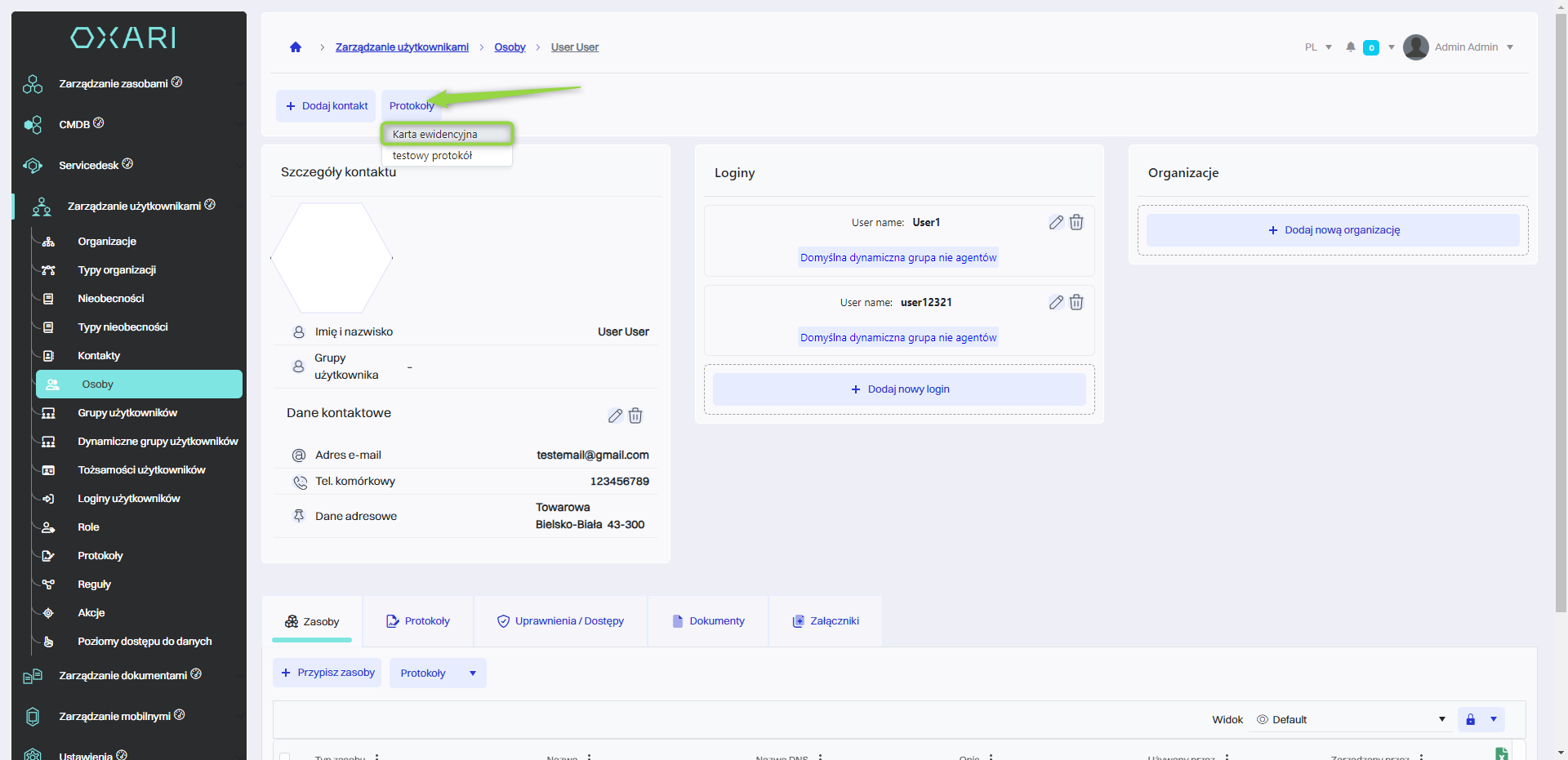 Aby użyć wcześniej skonfigurowany protokół przy osobie, należy przejść do sekcji Zarządzanie użytkownikami > Osoby, a następnie wejść w widok szczegółowy pożądanej osoby.