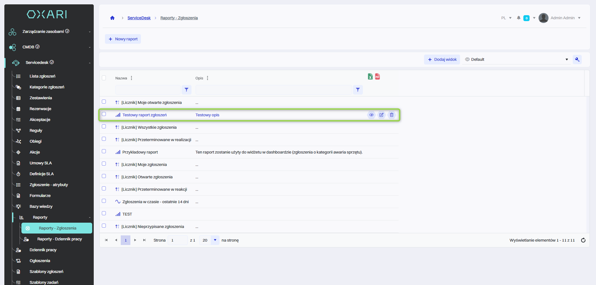 Raport po zapisaniu widnieje w tabeli Raporty - Zgłoszenia: