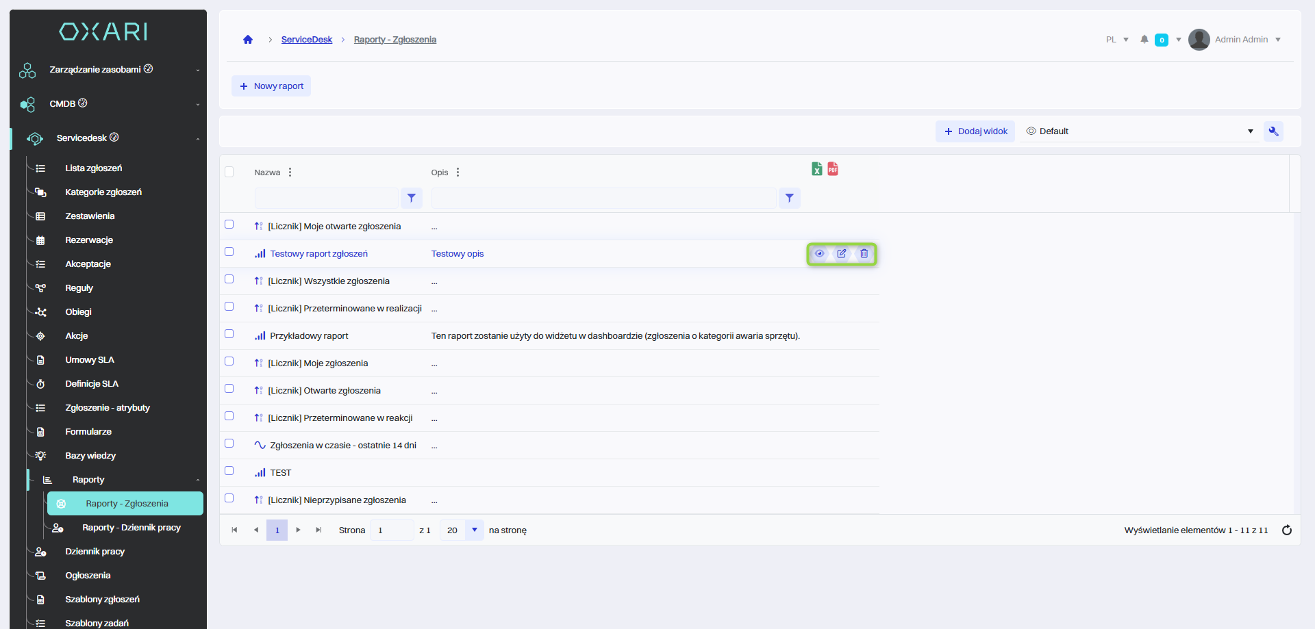 Raport może zostać wyświetlony, edytowany oraz usunięty za pomocą następujących przycisków.