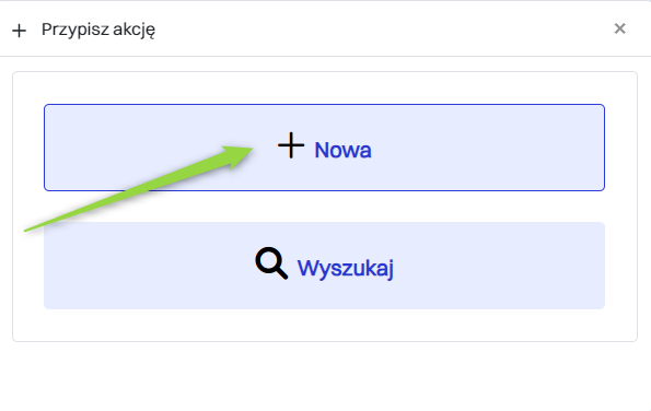 | 2 | "Wyszukaj" - Umożliwia wybór akcji, które zostały już wcześniej zdefiniowane w sekcji Zarządzanie zasobami > Akcje. Więcej o akcjach: Przejdź > |