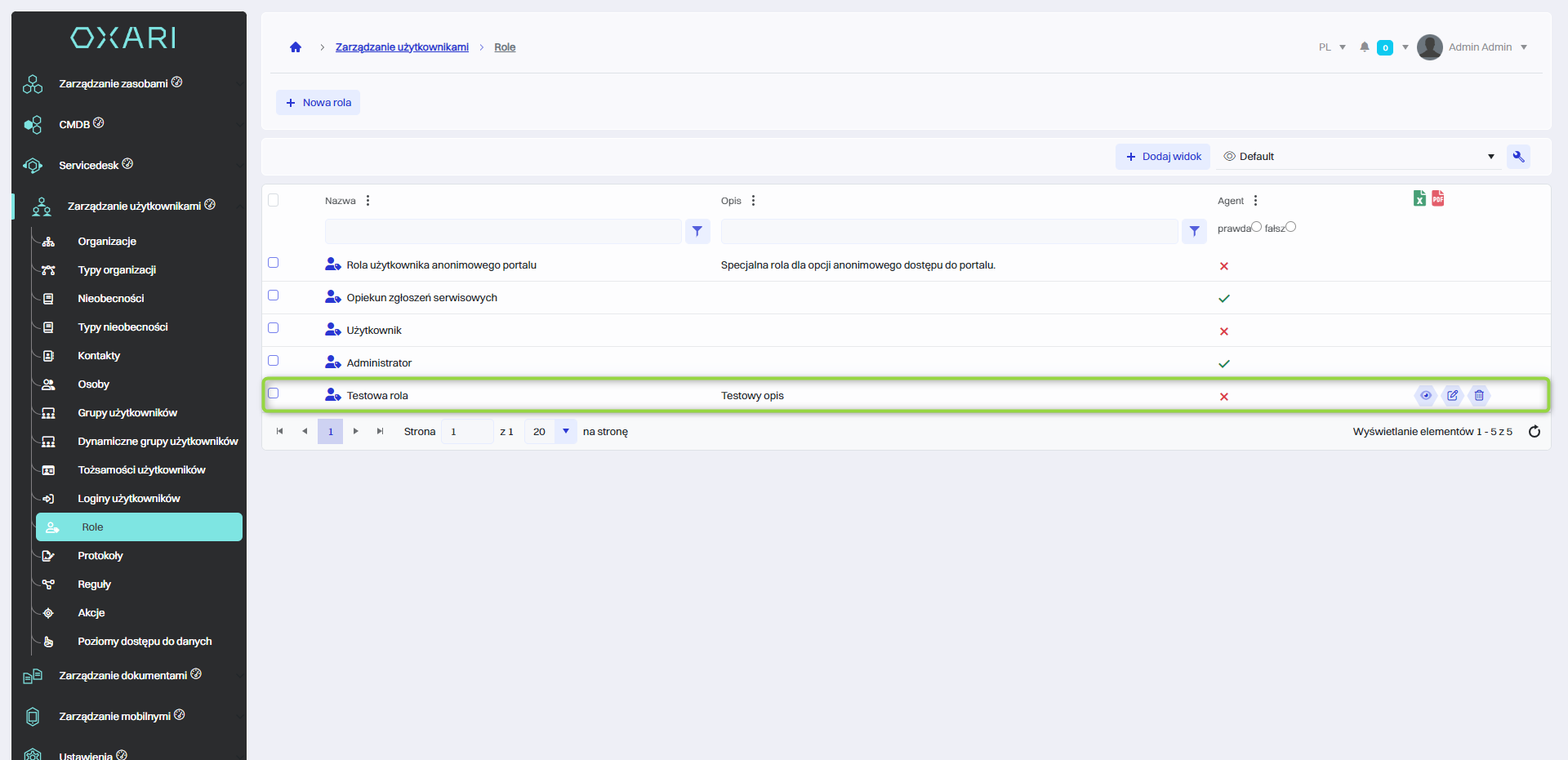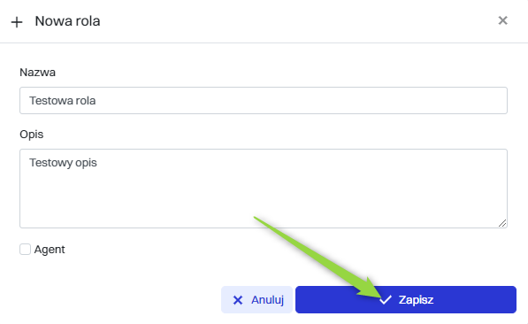 | 3 | Agent - Pole wyboru, zaznaczenie tej opcji może oznaczać, że nowa rola będzie miała związek z agentami, np. pracownikami obsługi klienta lub supportu technicznego. |