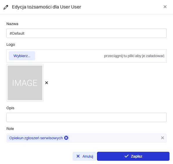 Następnie w oknie “Edycja tożsamości dla” znajdują się następujące elementy: