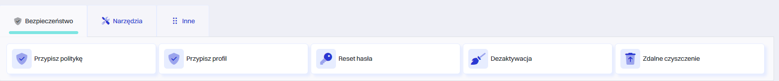| 8 | Przypisz politykę - pozwala na przypisanie określonej polityki zarządzania urządzeniem, co obejmuje zasady dotyczące bezpieczeństwa, konfiguracji czy dostępu do aplikacji. |