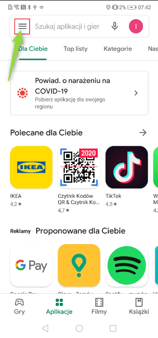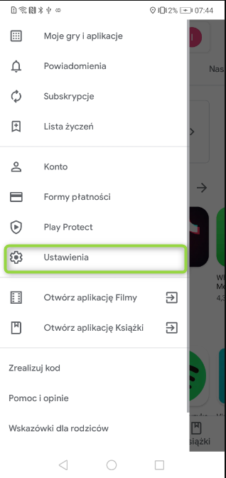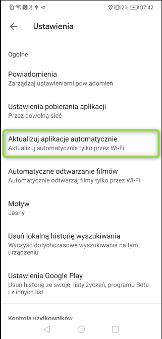W sekcji "Ustawienia" wybrać "Aktualizuj aplikacje automatycznie".