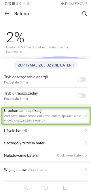 Dla telefonów marki Huawei należy zmienić ustawienia optymalizacji. W tym celu należy przejść do ustawień systemu: