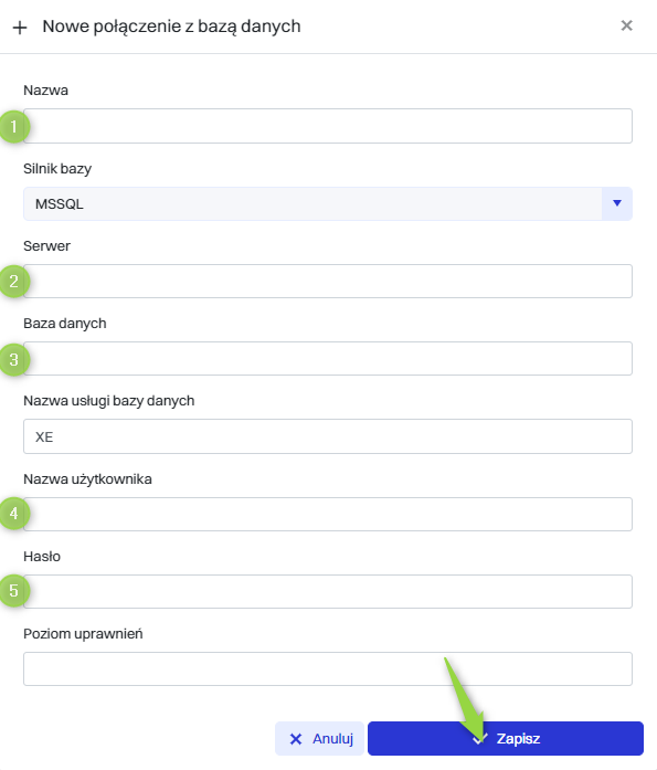 | 3 | Baza danych - Baza danych z którą tworzymy połączenie. |