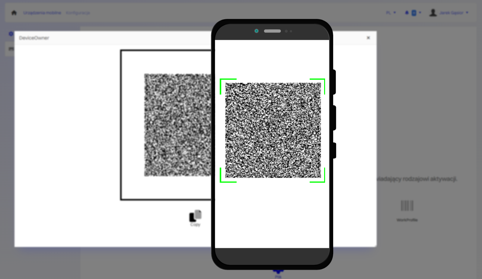 When the QR code scanner appears in the OXARI console, click the Device Owner icon and scan the QR code displayed in the pop-up window.