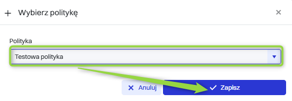 Finally, in the “Select Policy” window in the “Policy” field, select the desired policy from the list and click the “Save” button.