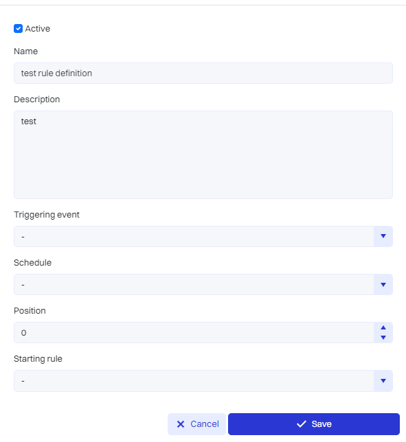 | 1 | Rule activation - Checking the "Active" option activates the rule. |
