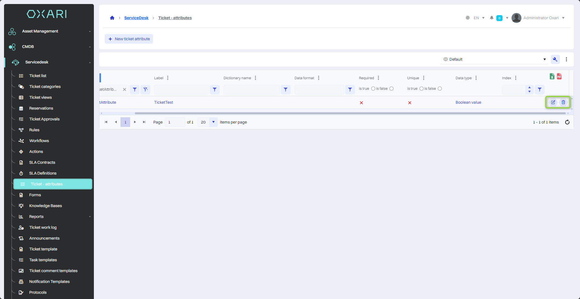 To add a new ticket attribute, go to Servicedesk > Ticket - attributes, and then click the “New ticket attribute” button.